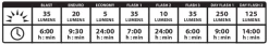 - Maximaal 24 uur op de ECONOMY Stand (5 Lumen)